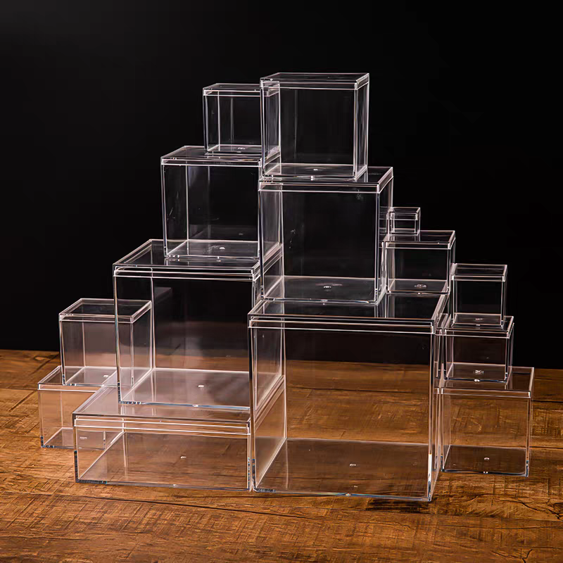 | Menyoroti | kotak pajangan akrilik kustom dengan tutup,kotak kubus persegi plastik bening,kubus penyimpanan akrilik dengan garansi |